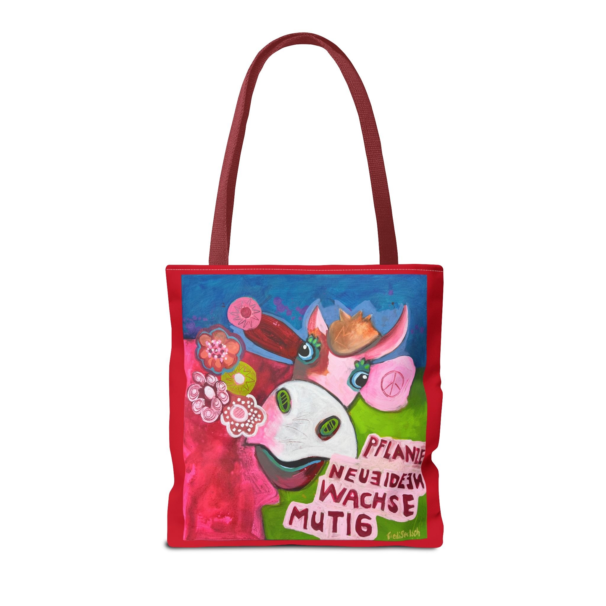 Diese Tragetasche zeigt ein Werk aus der Serie VogelLisi und ist ein praktischer Begleiter für Alltag, Markt, Atelier oder unterwegs. Dank robustem Polyester, verstärkten Tragegriffen und abgenähten Ecken bietet sie viel Platz, trägt zuverlässig und bleibt formstabil.